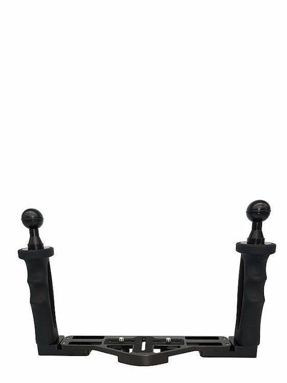This is Hyperion’s Pro Dual Tray Set. It includes 2 screws to suit most underwater camera housings, including Ikelite, Fantasea, Nauticam, Olympus, Canon, Sony, Panasonic, and many more. It is a modifiable base tray, which can be adjusted in its size from 28cm to 33.5cm. You can use it either with a single or dual screw mounted housing.