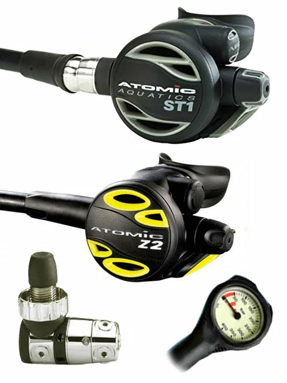 Similar to the T2 and B2 second stages, the ST1 is constructed from Titanium and features both the patented Atomic Seat Saving Orifice and Atomic Automatic Flow Control. The standard Stainless Steel Atomic Comfort Swivel is also present. The ST1 second stage features the high-flow second stage case for a better breathing experience from the shallower reefs to the ship wrecks in the deep.