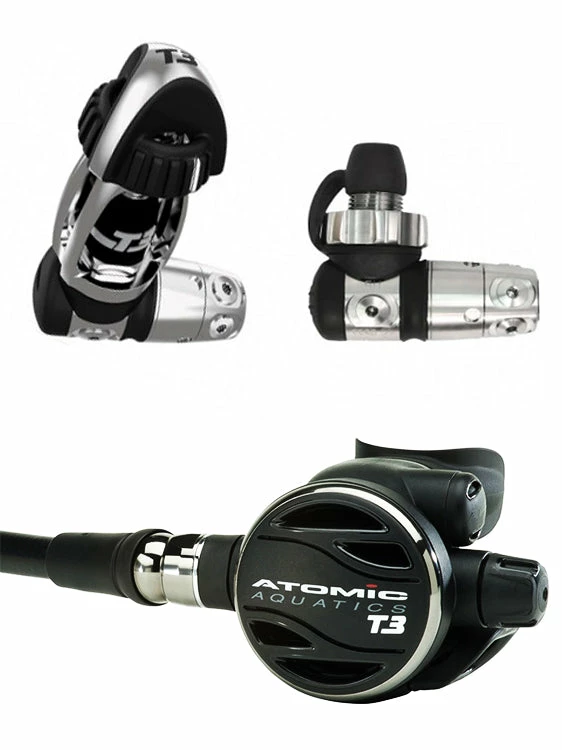 Precision machined from solid titanium billet the Atomic Aquatics T3 factory sealed first stage features the comfort swivel with black PVD coating and ‘Jet Seat’ high flow piston. The second stage has been optimised with a high flow stage case and lever design to lower breathing effort. The T3 has been specially designed to be not only the lightest reg in the world but also to safely have a 3 year/ 300 dive service interval and non contingent lifetime warranty, making this reg perfect for travels and diving in exotic location where service centres may be hard to find. Nitrox ready up to 40%.