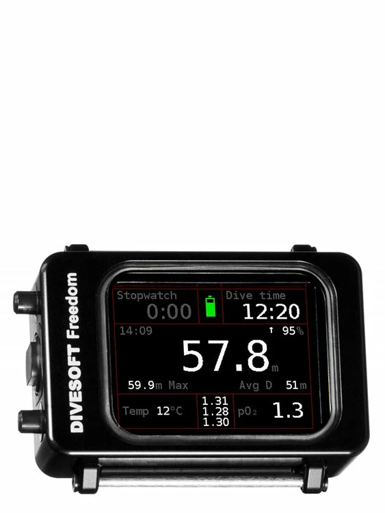The Freedom Advanced Bottom Timer was designed to meet the specific requirements of technical divers using ratio deco for decompression calculations. Built with strength and resilience in mind, the Freedom Advanced Bottom Timer has an operational depth of 300m, but it’s robust heavy-duty aluminum case has been tested even to depths as deep as 600m! The full colour, clear TFT display with extra large digits means that poor visibility isn’t going to set you back, even without a mask on you can read everything you need to know- the Freedom Advanced Bottom Timer was designed to ensure absolute safety even in extreme circumstances. With a dive profile that is visible in real time during the dive, that is recorded to the device’s logbook, and can be downloaded to your computer mobile phone with the USB, you can analyze your profiles in great detail post dive.