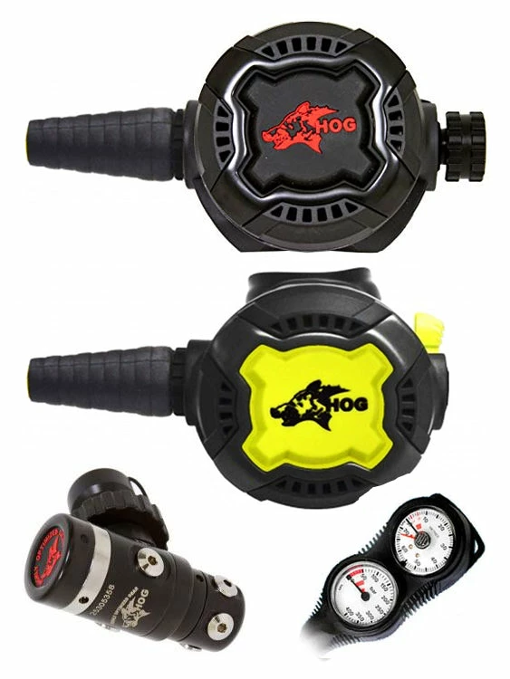 This HOG regulator combo was awarded Scubalab’s Tester’s Choice in 2014. The set includes the HOG D3 first stage, the Zenith Black second stage and Octopus, as well as an SPG (single or twin gauge).
