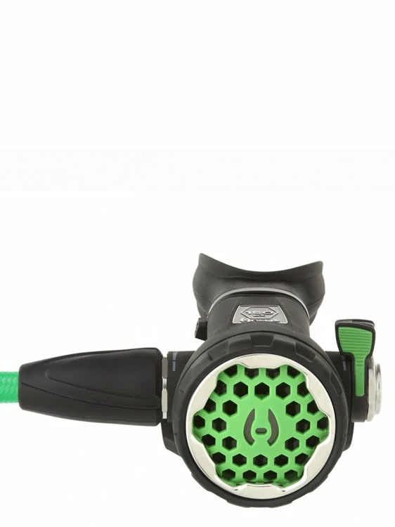 The reversible demand valve can be set up both ways, either right- or left-handed. The ergonomic exhaust of the second stage channels bubbles out of sight, so you can enjoy a better vision on your dive.