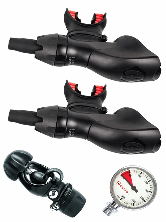 Get the whole set, ready to go. This regulator combo includes the Hollis DC7 first stage, the 500SE second stage and octopus, as well as a free termo SPG. All you need to jump straight into your next adventure.
