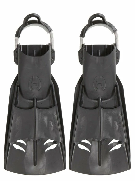 The Hollis F2 fin blades are designed to add more surface grip on the down- and upstroke in order to increase your efficiency no matter what type of kick you prefer. The shorter fin design enhances your underwater agility, which is especially crucial in tighter areas. The combination of the adjustable stainless steel spring straps and a large foot pocket will hold many types of different dive boots securely in place.
