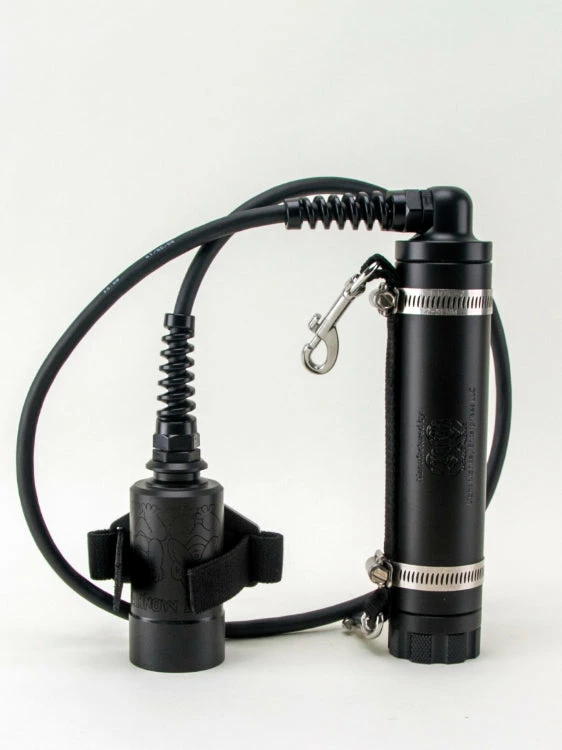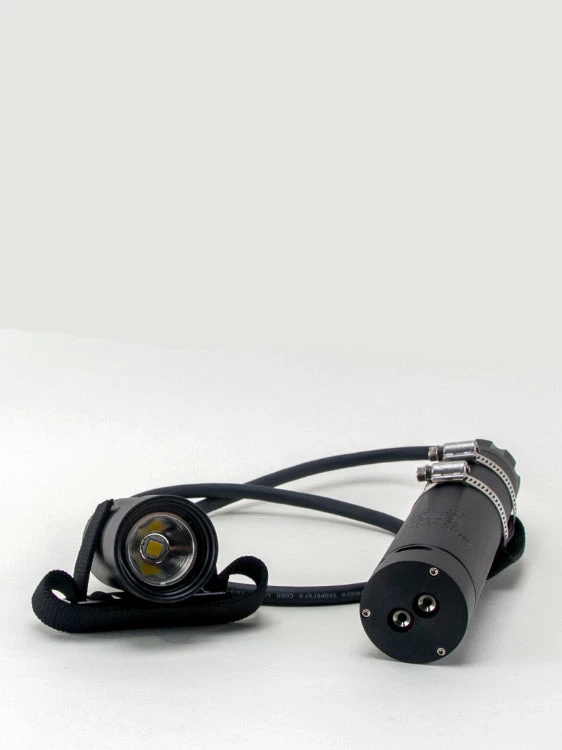 The sidemount version comes with a 52″ (130 cm) cord with a 90° angle wire connection from canister to light head allows for sidemount routing.