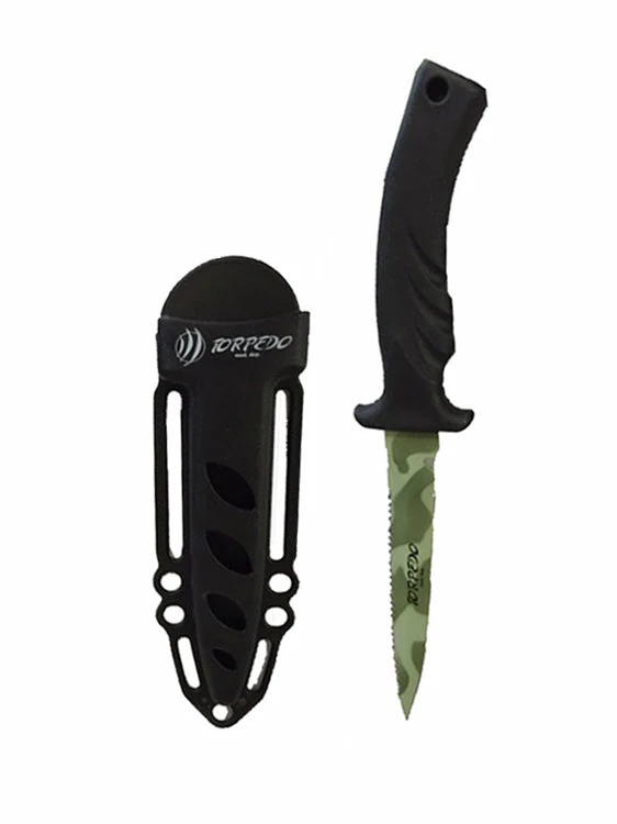 Mac Coltellerie also offers its Torpedo 11 Knife in Camo optic for spearfishing excursions. The Torpedo 11 has a Stainless Steel blade, which is durable and corrosion resistant. Perfect for the use in and around water!
