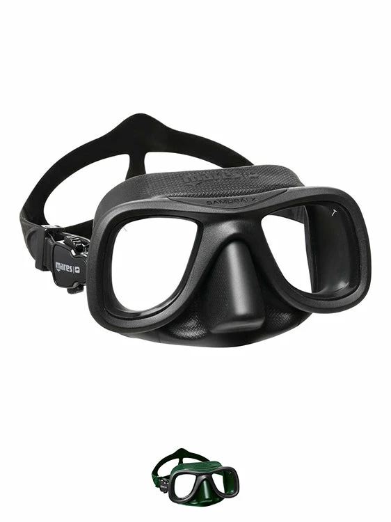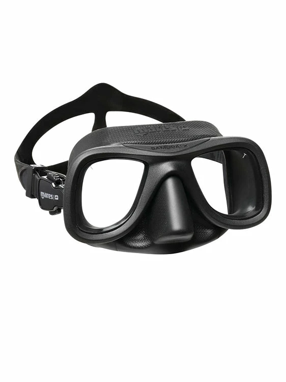 The Mares Pure Instinct Samurai X Freedive Mask offers a low volume mask that is designed to be hydrodynamic and reduce drag in the water.Â