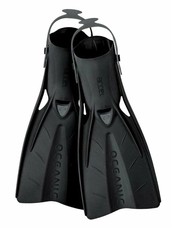 The Accel features unique effortless high-stretch heel straps that reduce drag and an angled fin shape designed for minimum power loss so that you can swim efficiently with multiple kicking styles and achieve maximum thrust. The blade’s centre channel, along with pronounced side rails, also helps minimise “side spill,” directing water behind the diver for maximum efficiency.