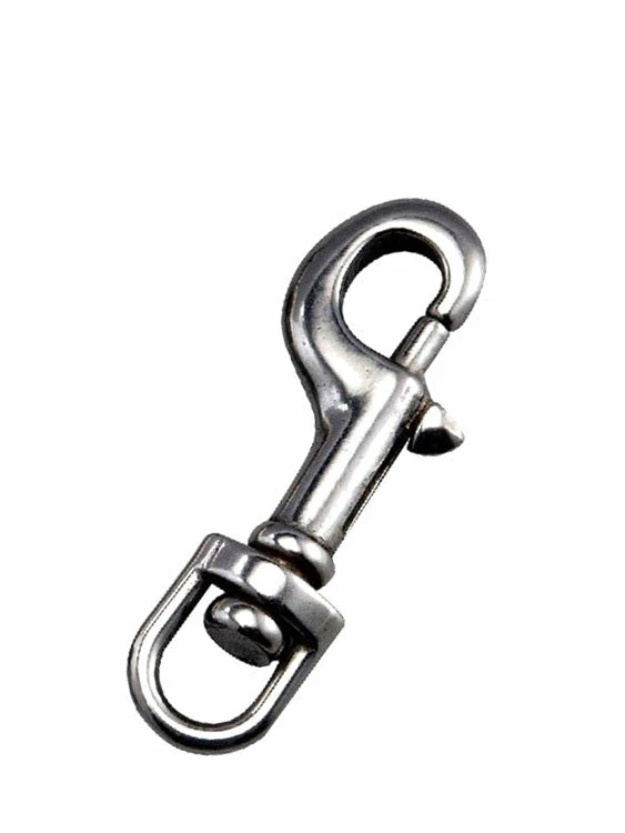 The small marine grade swivel bolt snap clip has an overall length of 7 centimetres! The end gate has been rounded for ultrasafe operation underwater!