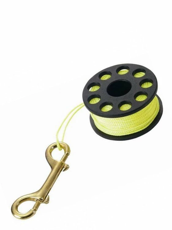 Finger spools are used for DSMBs (marker buoys) or jump reels. They can also be used for attaching buoys or as orientation lines. It is a reel with 30m / 50m line and comes with a double-end stainless steel bolt snap.