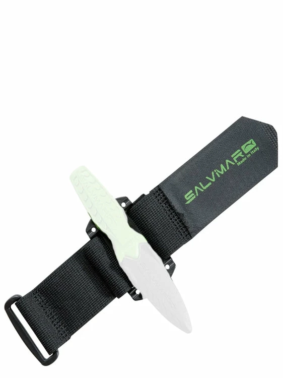 When you go freediving or spearfishing, you need both hands and cannot fumble around with a knife the whole time. This is why Salvimar’s elastic band knife holder is the perfect accessory.