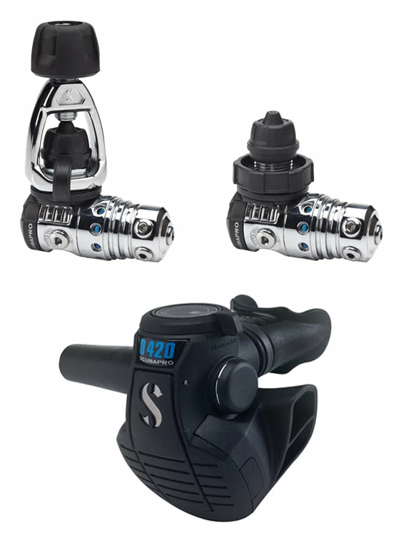 A reliable combination for your underwater air supply: the Scubapro MK25 Evo first stage (DIN or Yoke) together with the D420 second stage.
