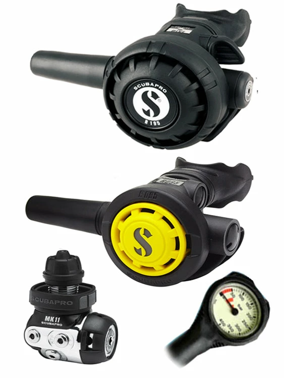 A great combo: The R195 together with the MK11. This makes for a reliable and sturdy regulator set. Together with the R095/R195 Octo and the free termo gauge, you will have everything you need to jump straight into the water.
