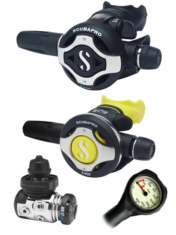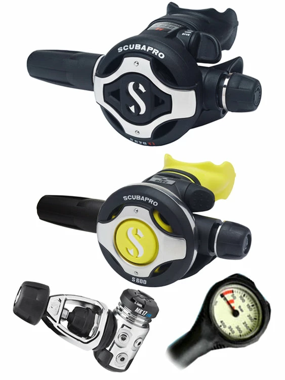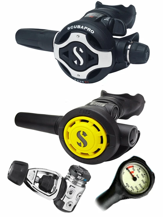 Scubapro’s MK17 EVO first stage + S620 second stage is a great combo to dive with. Together with the Octopus R095 or R195 and the free termo pressure gauge, you have everything you need to jump straight into the water!
