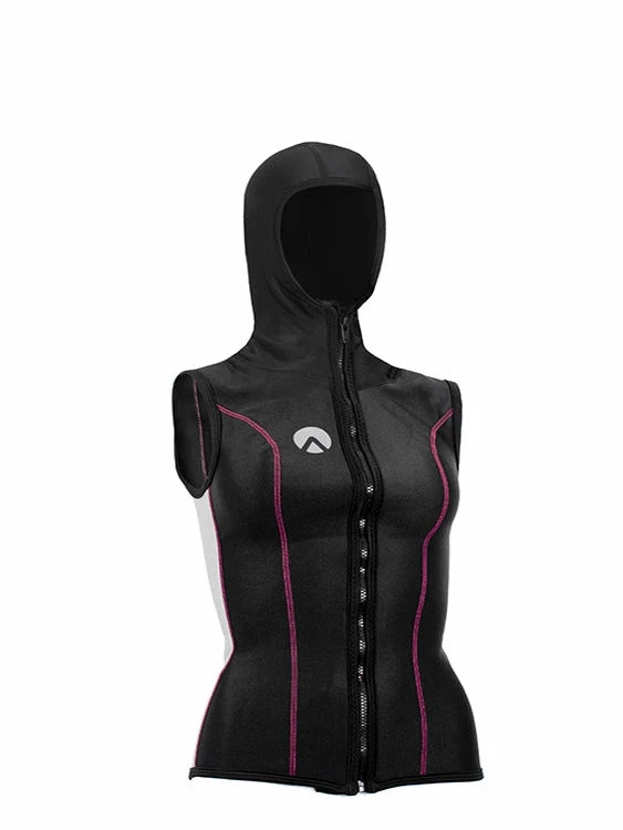 Especially for colder dives, this is the perfect additional layer for underneath your dry- or wetsuit. Most of your body’s heat is lost via your head, the Sharkskin Chillproof Sleeveless Hooded Vest protects your head and torso and keeps you warm. Due to the special fabric, this hood lets you hear better and there is less chance of ear squeeze than with neoprene hoods.