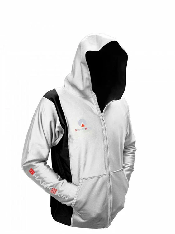 The jacket features Sharskin’s innovative Chillproof material, which is composed of three functional layers. Each layer serves a specific purpose. The outer layer (a robust, high quality 4 way stretch material with a durable water repellent) withstands water splashes. The technical one way semi permeable membrane wicks moisture and excess heat to keep your body temperature at a perfect level. The inner layer is a high tech hollow fibre fleece, also wicking moisture, keeping your skin dry.