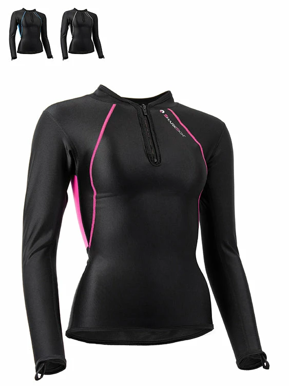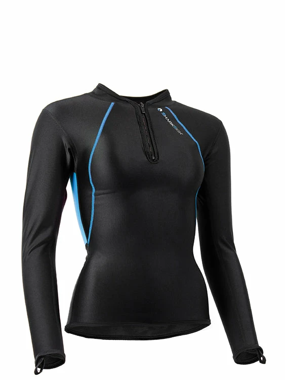 Stay warm with the Sharkskin Chillproof Long Sleeve Chest Zip for women. Sharkskin’s Chillproof formula will keep you warm, both in and out of the water during a multitude of different water related activities, such as diving, snorkelling and kayaking. The ergonomic cut for women fits snugly against your body. The high collar keeps your neck warm and the chest zip helps you vent excess heat.