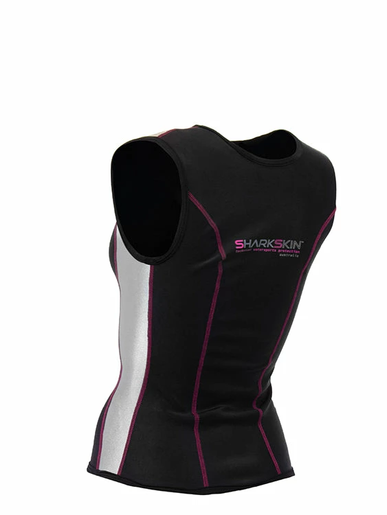 The Sharkskin Chillproof Sleeveless Vest Ladies has a female cut and is designed to be worn by itself or underneath wetsuits. It’s made of a thin, fleece-like material but provides the same warmth of 2.5 – 3mm. neoprene.