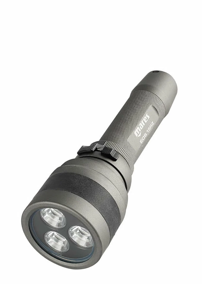 The Mares 15RZ Dive Torch is a strong light, great for low visibility or using on night dives it provides you with 1504 lumens from its LED bulbs for up to 125 minutes. This torch is adaptable to your needs with the ability to adjust the beam from 12° to 75°. It also has three modes, on (full power), low (40% power) or off and easy to use slide lock.Â
