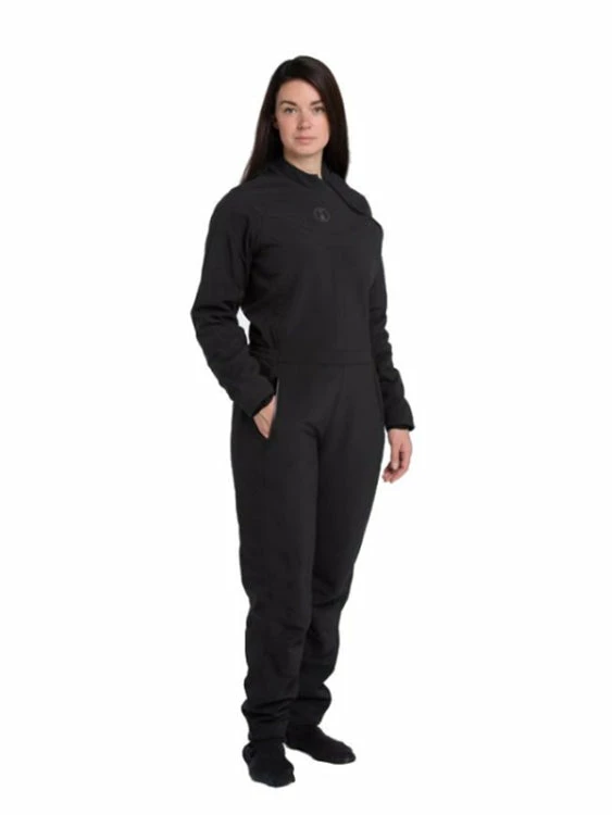The outer layer of the thermals is waterproof offering excellent thermal protection even if your drysuit has small leaks. This one piece suits has thumb and foot loops for easy of donning your drysuit, convenient two way zipper, and zippered pocket.