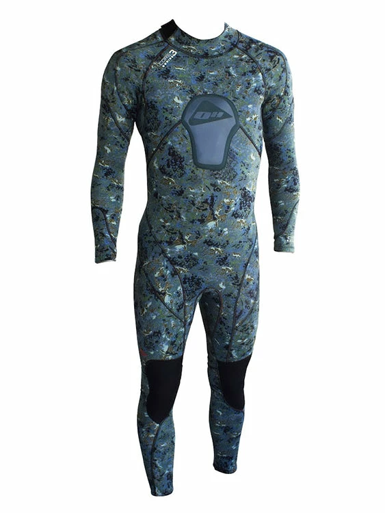 Ocean Hunter’s Chameleon Core is a 3mm Spearfishing Suit in camo optic. It is a one piece wetsuit featuring a large rear zip for easy donning and doffing, as well as a Velcro closure.